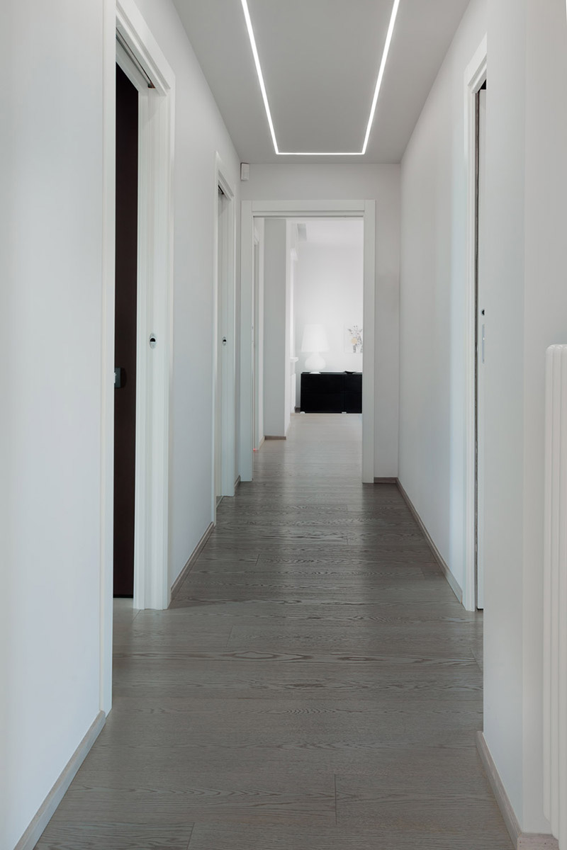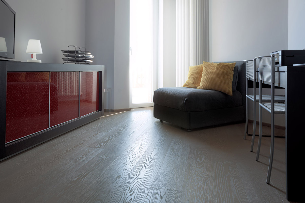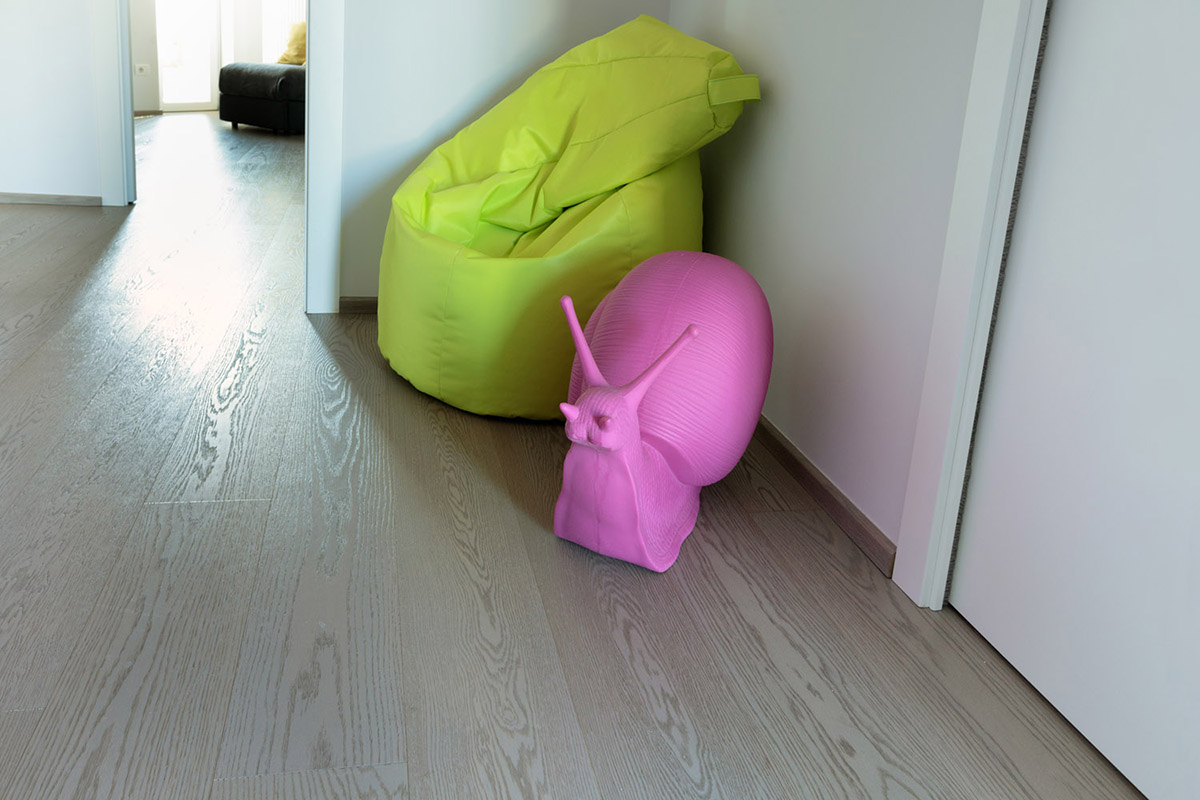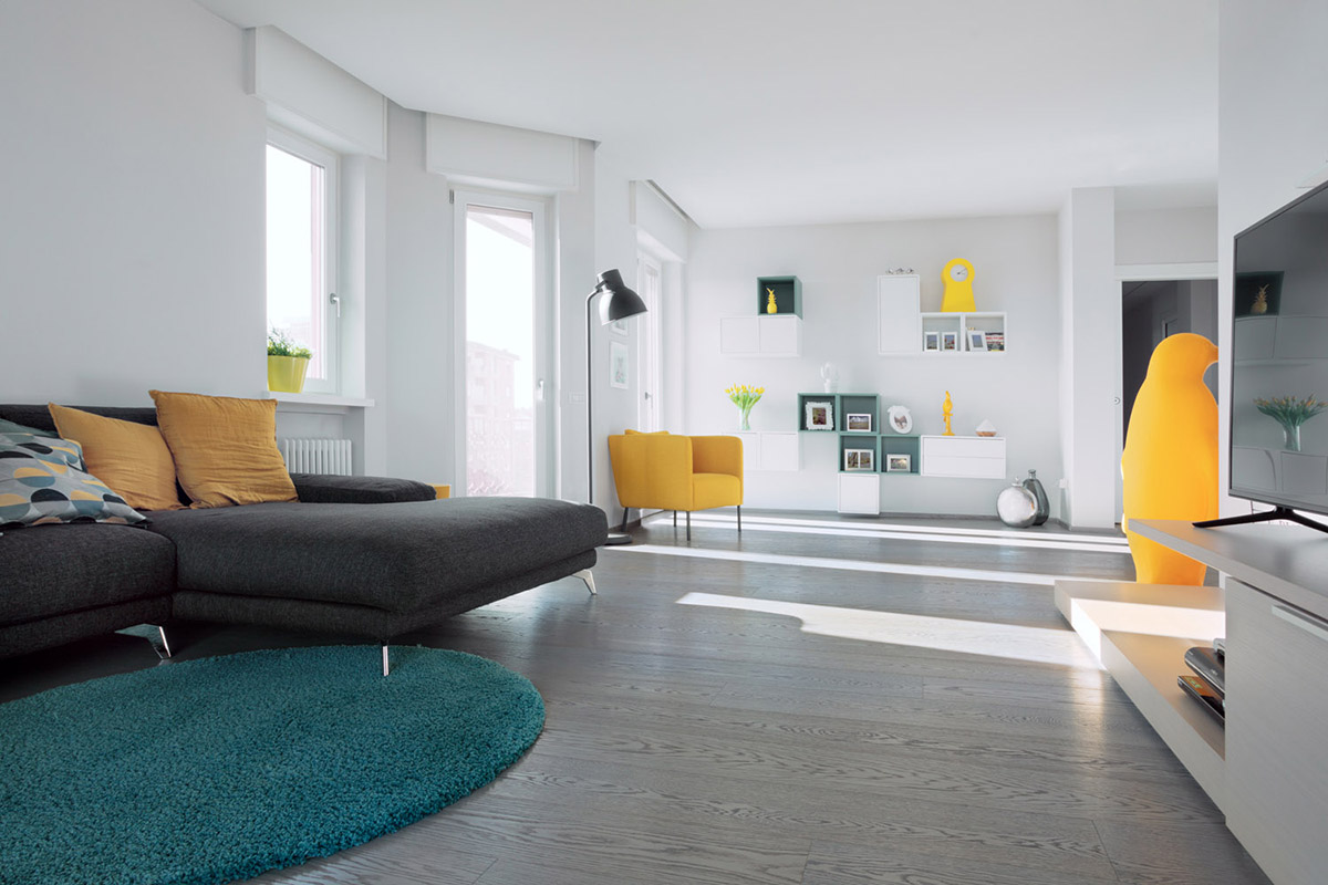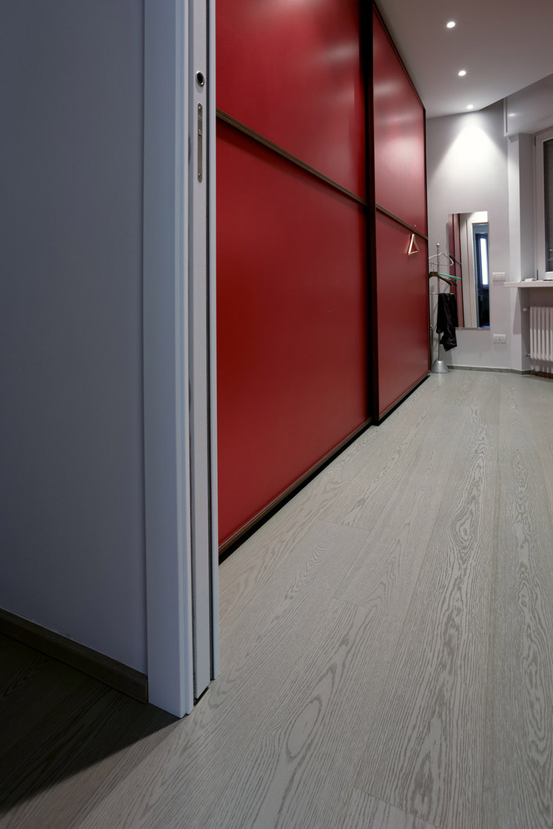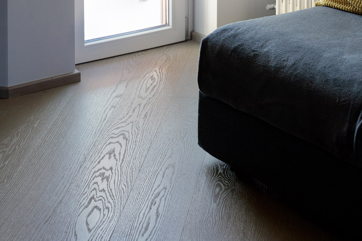 Per questo attico di 140 metri quadri la cliente ha scelto il Rovere Risveglio Fiemme3000 Senza Nodi, trattato ad olio e posato in opera flottante sul quale i piedi della figlia oggi, corrono felici.